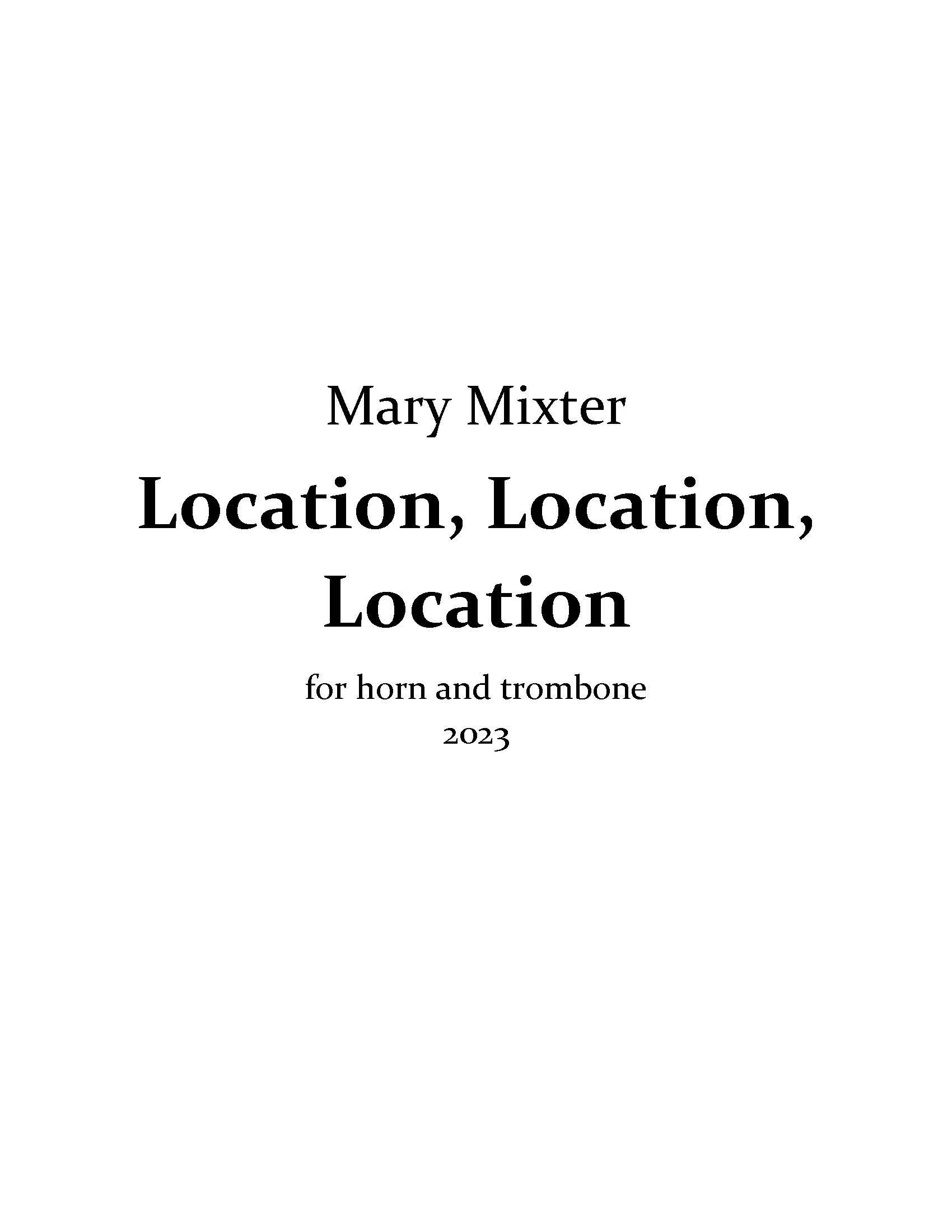 Box Five for trombone and piano $20.00 Location, Location, Location for two trombones $20.00 Location, Location, Location for horn and trombone $20.00 More items will be added soon.Please feel free to contact me with inquiries about any of the other pieces on the Music or About pages.